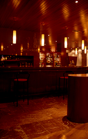 El café, de 104 m2, se organiza en dos zonas, la de barra y la zona de mesas, diferenciadas por su forma en planta, por las alturas de los techos, por los pavimentos diferentes de madera y mármol y por la intensidad de la luz natural. La entrada al local se sitúa entre ambas. Una vez más la disposición de los pilares existentes determinan la distribución de la barra, aseos y almacén. La zona de aseos se plantea con una continuidad visual con la zona de la barra desde donde se accede. El primer espacio de lavabos se comparte por hombres y mujeres. Los materiales utilizados han sido mármol rojo y madera roja. La presencia del rotulo intermitente de neón diseñado expresamente determina la atmósfera de este espacio. El presupuesto fue de 50.000 €.