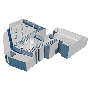 -En los recorridos desde el exterior al interior, se ha puesto especial interés en crear una secuencia de espacios con distintos grados de iluminación y escala intencionadamente, para que al llegar al interior se pueda observar el gran espacio central que permitirá entender la organización espacial del museo por parte del visitante y relacionar visualmente todas las dependencias y niveles, así como sus contenidos.