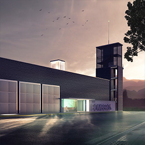 Como se decía anteriormente la torre de prácticas se propone como opción para una segunda fase. Permite los ejercicios físicos del personal y refuerza el carácter singular del edificio.
