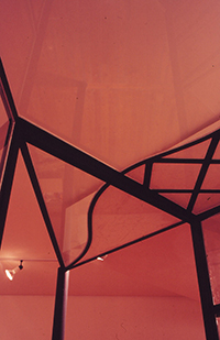 El acceso se realiza a través del portal del edificio. La intervención se centra en la zona de entrada y en la escalera de bajada al sótano. La estructura que conforma un pequeño vestíbulo a la entrada pretende crear un espacio intermedio de transición entre el portal y el interior, con una escala que contrasta con ambos espacios. El mostrador se articula y compone con la geometría de esta estructura acristalada, y el techo acota su dimensión en altura, más baja que el resto. La otra pieza de atención ha sido la escalera de acceso al sótano, que se ha tratado como una escultura en mármol con distintos acabados superficiales. Tanto el sótano como la planta superior se dejan como espacios diáfanos que permitan cualquier montaje expositivo.