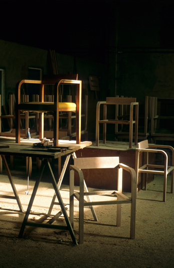 Se muestran aquí dos ejemplos: la silla y el sillón proyectados para los salones de actos del Museo del Vino y del Museo de las Villas Romanas.